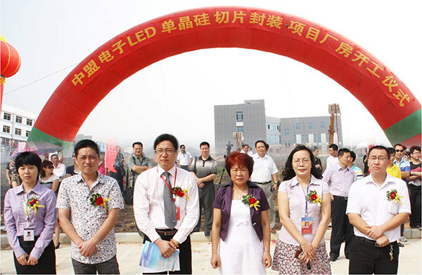 2011年10月28日上午,廣西北海中盟電子科技開發(fā)公司3號(hào)廠房舉行了隆重的開工儀式,該廠房建筑面積11000平方米,預(yù)計(jì)2012年7月底投入使用,主要從事LED封裝、單晶硅切片封裝、太陽能路板生產(chǎn)。