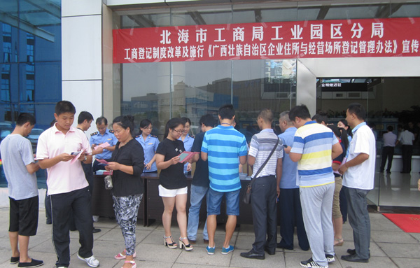 在中國電子北海產(chǎn)業(yè)園宣傳現(xiàn)場,工業(yè)園區(qū)工商分局負(fù)責(zé)人表示,“從材料的申請?zhí)峤恢赁k證,承諾為期7個工作日辦好,根據(jù)園區(qū)的優(yōu)質(zhì)企業(yè),特事特辦,急事急辦,材料齊全的即可當(dāng)天頒證。”據(jù)了解,此次政策免去驗資等手續(xù),不但節(jié)約時間,還降低企業(yè)成本。中國電子北海產(chǎn)業(yè)園園區(qū)企業(yè)北海高創(chuàng)電子信息孵化器有限公司領(lǐng)到了新版營業(yè)執(zhí)照,新版由以前的橫版改為豎版,沒有了實收資本一項,并且左下角有一個二維碼,掃描成功后就能看到企業(yè)名稱、法人、注冊時間等登記信息。工作人員表示,“這次工商登記制度改革對于創(chuàng)業(yè)者最大的實惠就是注冊資本由實繳改為認(rèn)繳登記,企業(yè)籌集資金的壓力就小了很多。而且現(xiàn)在辦理執(zhí)照不需要再提供驗資報告等各種材料,只提供場地證明、公司章程就可以申請設(shè)立登記,提交的資料簡化了,手續(xù)自然就簡單便捷了,從人員的招募到辦理登記,節(jié)省了幾個月的時間。”北部灣電子信息科技企業(yè)孵化器的創(chuàng)業(yè)青年者紛紛前來咨詢,工業(yè)園區(qū)工商分局熱情、細(xì)致地為咨詢者解惑,同時發(fā)放了申辦宣傳材料,為創(chuàng)業(yè)者們提供專業(yè)、便捷、高效的全方位咨詢服務(wù)。