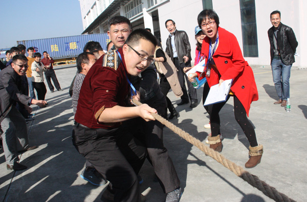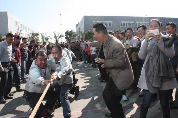 下午,一場別開生面的拔河比賽將活動推向小高潮。拔河比賽以促進企業(yè)交流為宗旨,豐富職工體育活動為目的,為企業(yè)搭建展現集體風采的舞臺,從而發(fā)揚團隊精神,增強凝聚力。此次比賽園區(qū)企業(yè)積極響應,共有11個企業(yè)組隊參加,特別是有些企業(yè)為了參賽,臨時停工,比賽結束后回單位繼續(xù)生產,體現了園區(qū)大家庭的凝聚力。每支參賽隊伍共15人,其中男生10人,女生5人,實行淘汰制晉級方式。當比賽哨聲響起,各參賽隊員們口中一起高呼“一二,一二”,雙手緊握長繩,憋足勁拼命往后拉,拉拉隊在旁助陣加油,恨不得抓起繩子跟隊員們一起努力,各種加油聲、吶喊聲此起彼伏,回響至整個園區(qū)。經過激烈較量,最終冠捷科技獲得冠軍,瑞達物業(yè)獲得亞軍。