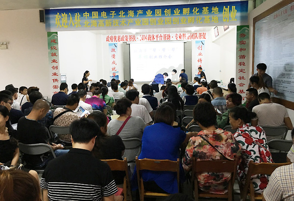 為助力推進北海市“大眾創(chuàng)業(yè)、萬眾創(chuàng)新”,以創(chuàng)業(yè)帶動就業(yè)、提高企業(yè)創(chuàng)新能力,“幫幫幫”草根創(chuàng)業(yè)推介會于2016年9月7日在北海人才大廈舉行。推介會以“政府優(yōu)惠政策幫扶、園區(qū)平臺載體幫助”為主導(dǎo),服務(wù)創(chuàng)業(yè)團隊,為初始創(chuàng)業(yè)團隊(或意向創(chuàng)業(yè)者)與孵化基地之間搭建面對面溝通交流平臺,讓創(chuàng)業(yè)團隊了解創(chuàng)業(yè)孵化基地情況,促成創(chuàng)業(yè)團隊入駐基地創(chuàng)業(yè),為創(chuàng)業(yè)團隊營造良好創(chuàng)業(yè)環(huán)境。