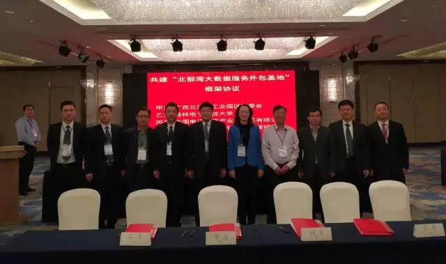 乘著北海市委務(wù)虛會(huì)的東風(fēng),2017年1月8日,在自治區(qū)工信委徐莉青副主任、北海市委常委、副市長(zhǎng)曾子祥,桂林電子科技大學(xué)校長(zhǎng)古天龍等領(lǐng)導(dǎo)見(jiàn)證下,清華大學(xué)國(guó)家服務(wù)外包人力資源研究院與桂林電子科技大學(xué)、北海工業(yè)園區(qū)管委會(huì)、中國(guó)電子北海產(chǎn)業(yè)園公司在深圳簽署合作協(xié)議,建設(shè)北部灣大數(shù)據(jù)及服務(wù)外包基地,標(biāo)志著以軟件及信息服務(wù)業(yè)為主導(dǎo)產(chǎn)業(yè)的中國(guó)電子北部灣信息港進(jìn)入新的發(fā)展階段。