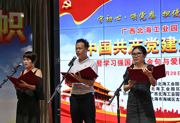 2020年6月28日下午,廣西北海工業(yè)園區(qū)迎慶中國(guó)共產(chǎn)黨建黨99周年暨學(xué)習(xí)強(qiáng)國(guó)每日金句與愛國(guó)詩詞朗誦讀比賽在工業(yè)園區(qū)舉行。中國(guó)電子北海產(chǎn)業(yè)園聯(lián)合黨支部組織支部黨員及代表參賽,經(jīng)過精彩角逐,榮獲比賽二等獎(jiǎng)。