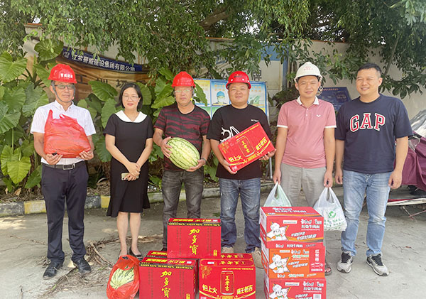 2023年7月19日下午,園區(qū)項(xiàng)目中電春海湖、中電海灣國(guó)際建設(shè)現(xiàn)場(chǎng)烈日炎炎,受集團(tuán)公司領(lǐng)導(dǎo)的委托,中國(guó)電子北海產(chǎn)業(yè)園公司副總經(jīng)理劉曉娟到項(xiàng)目建設(shè)現(xiàn)場(chǎng),為高溫天氣下堅(jiān)守在一線的工作者送去了清涼和慰問(wèn),囑咐大家在高溫天氣下工作要做好防暑降溫措施,合理安排工作時(shí)間。